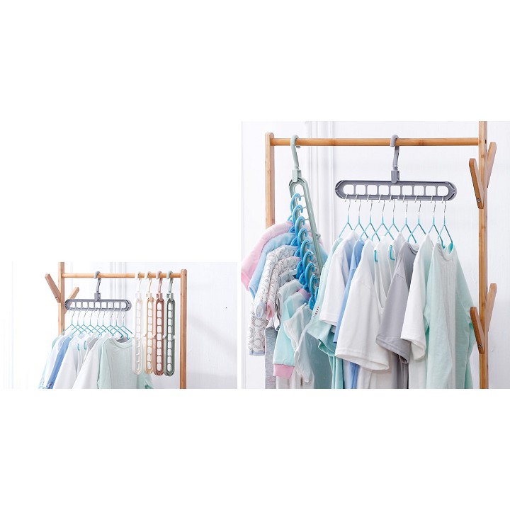 ✅Móc treo quần áo đa năng tiện ích tiết kiệm diện tích (9 lỗ) thiết kế thông minh, tiện lợi treo được 9 móc trên 1 dàn. Treo được nhiều quần áo. Treo ngang treo dọc chỉ cần 1 động tác nhỏ. Chất liệu Nhựa ABS cứng, chịu lực cao. an toàn cho sức khỏe.