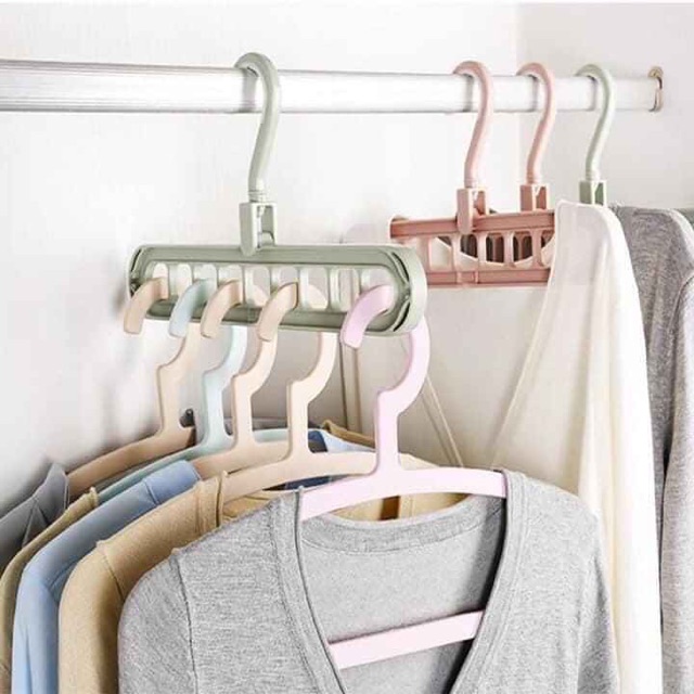 Thiết kế thông minh, tiện lợi treo được 9 móc trên 1 dàn. Treo được nhiều quần áo. Treo ngang treo dọc chỉ cần 1 động tác nhỏ. Chất liệu Nhựa ABS cứng, chịu lực cao. an toàn cho sức khỏe.