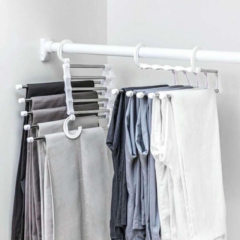 ❤MÓC TREO TIẾT KIỆM KHÔNG GIAN ❤️✔️Thiết kế 5 trong 1, giữ cho quần của bạn sạch sẽ và gọn gàng, tiết kiệm không gian hơn. Có hai móc trên đầu. Bạn có thể sử dụng hai móc cho hệ thống treo ngang hoặc chỉ sử dụng móc cho hệ thống treo dọc. Năm ống thép không gỉ được sử dụng, mỗi ống có thể được kéo ra ngoài để dễ dàng treo và tái chế. Có thể được sử dụng như một giá phơi. Được làm bằng thép không gỉ chất lượng cao, bền và dễ dàng mang theo. Thiết kế 5 trong 1 giữ cho quần của bạn sạch sẽ và gọn gàng, tiết kiệm không gian hơn