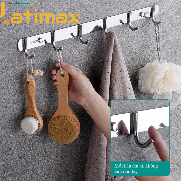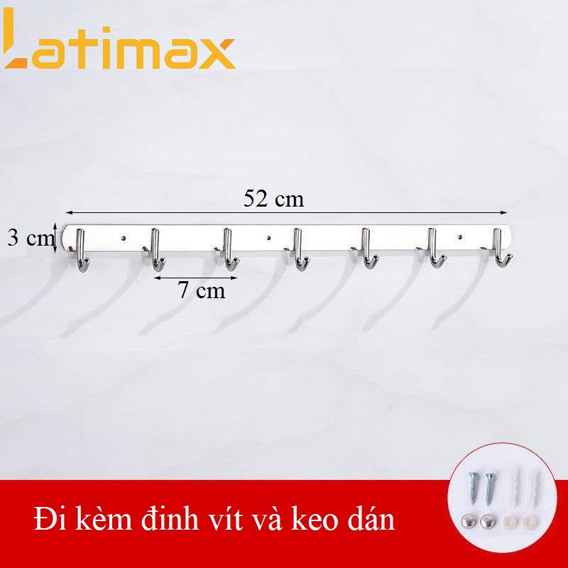 [Mã BMBAU50 giảm 7% đơn 99K] Móc treo Quần Áo dán tường 7 móc Latimax Inox 304 Cao cấp - Tặng kèm keo và ốc vít