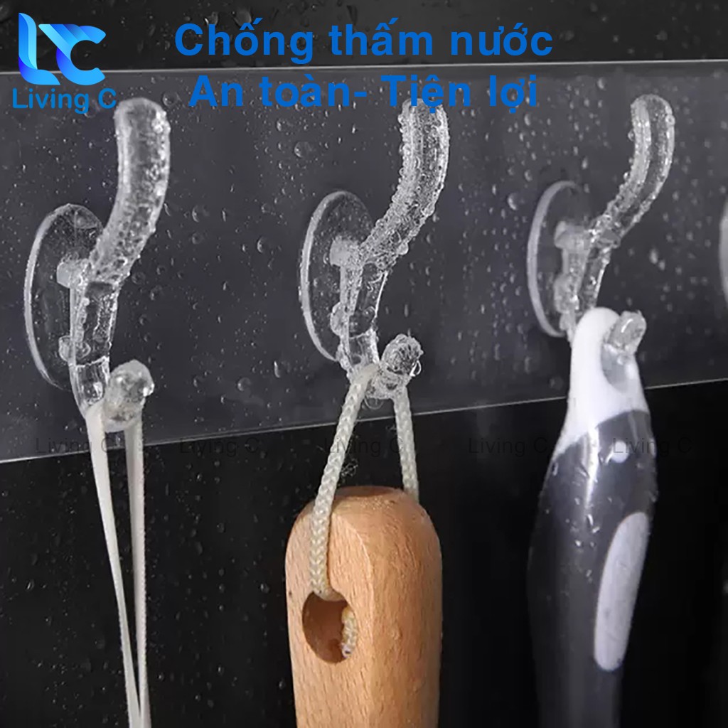 - Tên sản phẩm: Móc treo quần áo dán tường Living C, giá treo đồ 6 móc kép nhựa loại lớn không cần khoan đục tiện lợi _6M