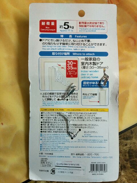 Móc treo quần áo gài cánh cửa 4 lỗ chịu tải 5kg G10-234Xuất xứ: Trung Quốc sản xuất theo yêu cầu sản phẩm của hãng KM Nhật Bản