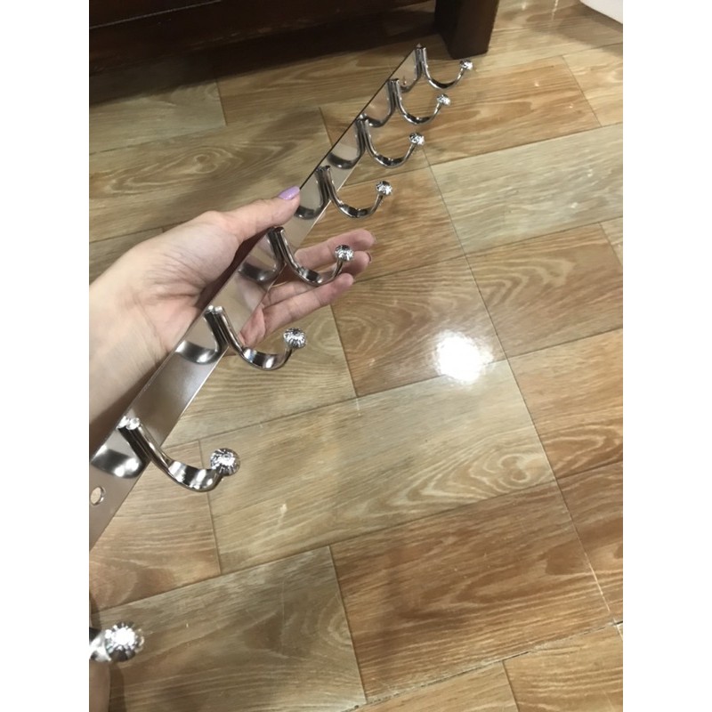 - Chất liệu: làm bằng inox, thanh đặc, không gỉ, sáng bóng- Công dụng: treo đồ, quần áo, nón, dù, chảo, nồi,...