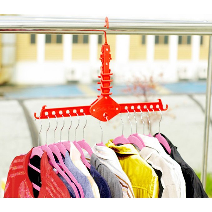 Gồm 12 lỗ và 2 móc 2 đầu để treo móc quần áo gọn gàng.