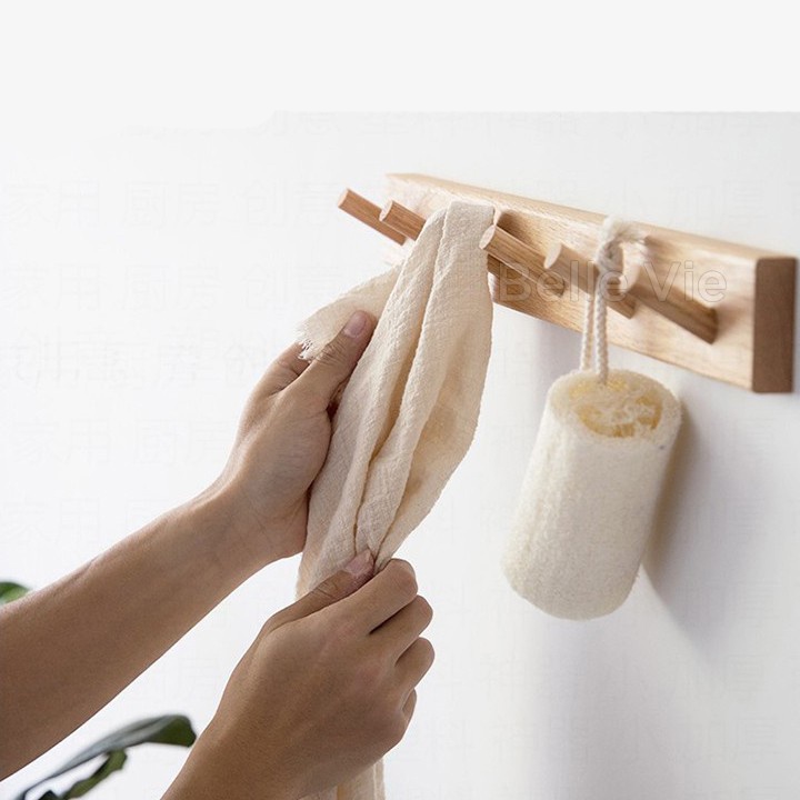 Nhà cửa & Đời sống > Sắp xếp nhà cửa > Mắc áo || Móc treo quần áo gỗ 6 móc gắn tường không cần khoanCòn hàng