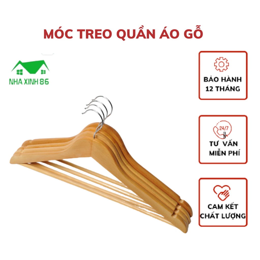 Nhà cửa & Đời sống > Sắp xếp nhà cửa > Mắc áo || Móc treo quần áo gỗ chống mối mọt, sơn phủ bóng cao cấp l Móc quần áo bằng gỗ bề mặt nhẵn, không xước vải, có rãnh 2 đầuCòn hàng
