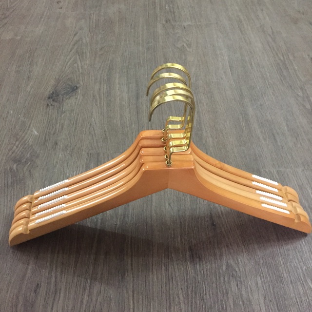Gỗ tụe nhiên đc sơn phủ 3 lớp cực bền màu và sáng bóng.,thân gỗ dày 1.2cm cùng phần đầu móc mạ vàng gương sang trọng,vai áo có rãnh và đệm vai giúp trống trượt áo. Đầu móc xoay 360 độ.