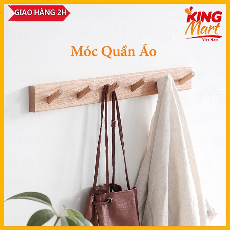 Móc Treo Quần Aó Gỗ Gắn Tường - Thanh Treo Đồ Đa Năng 6 Móc Cao Cấp