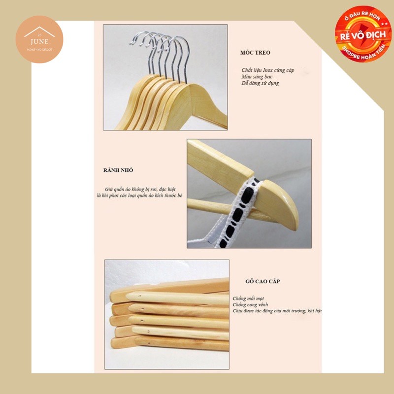25 June DecorMóc Gỗ Treo Quần Áo Gỗ Thông Chống Mối Mọt Bảo Hành 12 Tháng