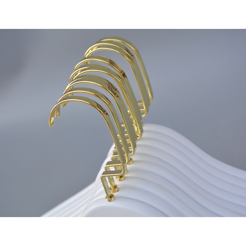 Nhà cửa & Đời sống > Sắp xếp nhà cửa > Mắc áo || Móc treo quần áo gỗ trắng đầu dẹp vàng ( 1 móc )Còn hàng