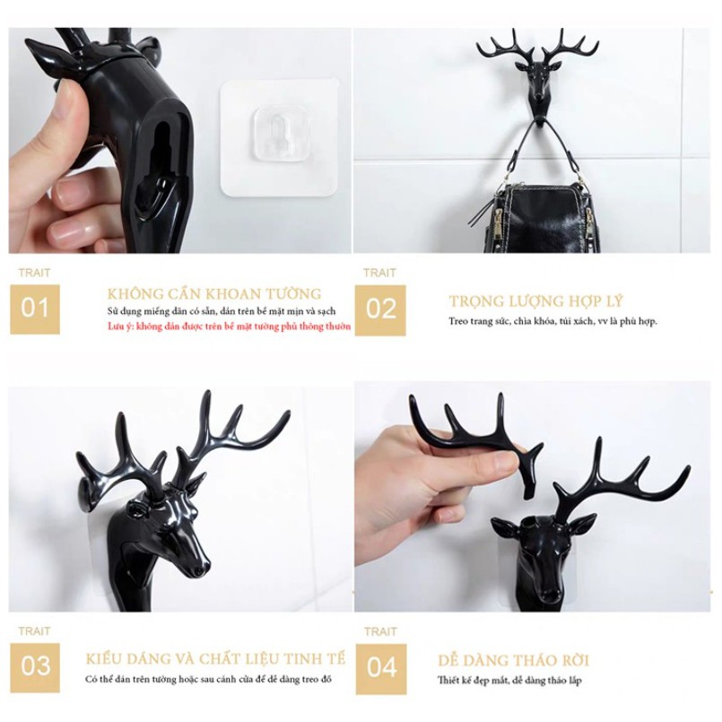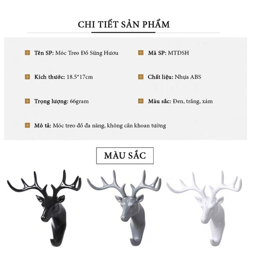 📌Móc treo đồ dán tường hình sừng hươu được làm từ vật liệu nhựa ABS chống lão hóa, độ bền cao.
