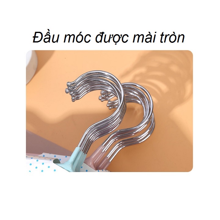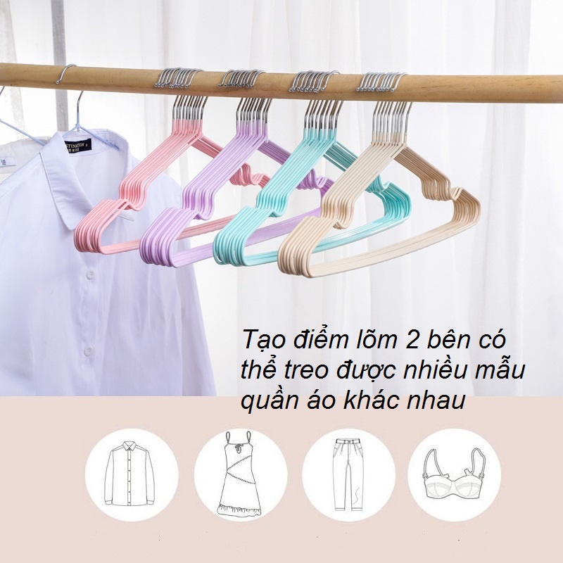 Móc treo quần áo inox bọc nhựa chống trơn - Set 10 chiếc- Móc lõi inox sáng bóng, bên ngoài bọc nhựa chống trơn.