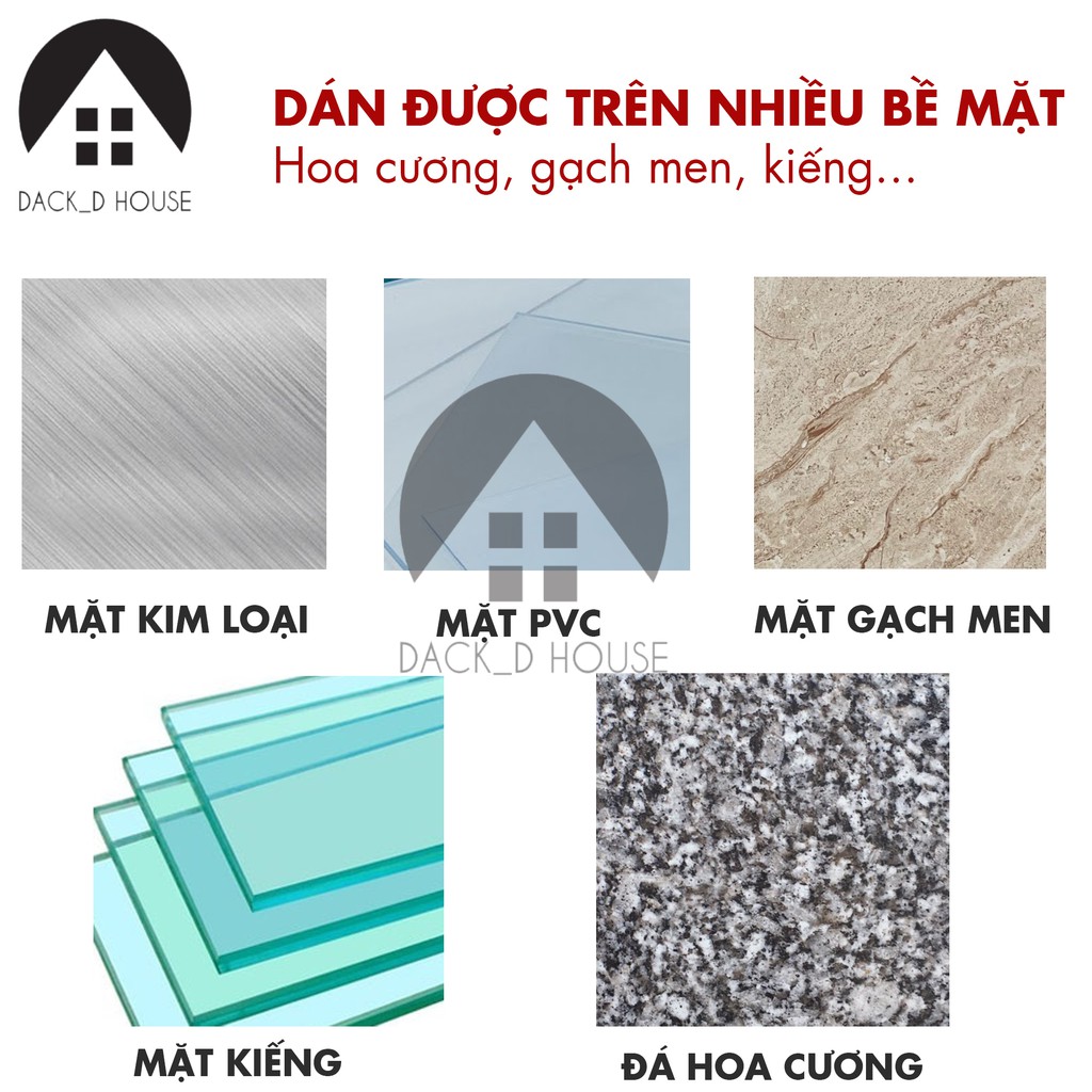 Dán lên được lên tất cả bề mặt như; gạch men, kính, nhôm, gỗ, đá granic ... ( inbox tư vấn nhiệt tình hơn nè )