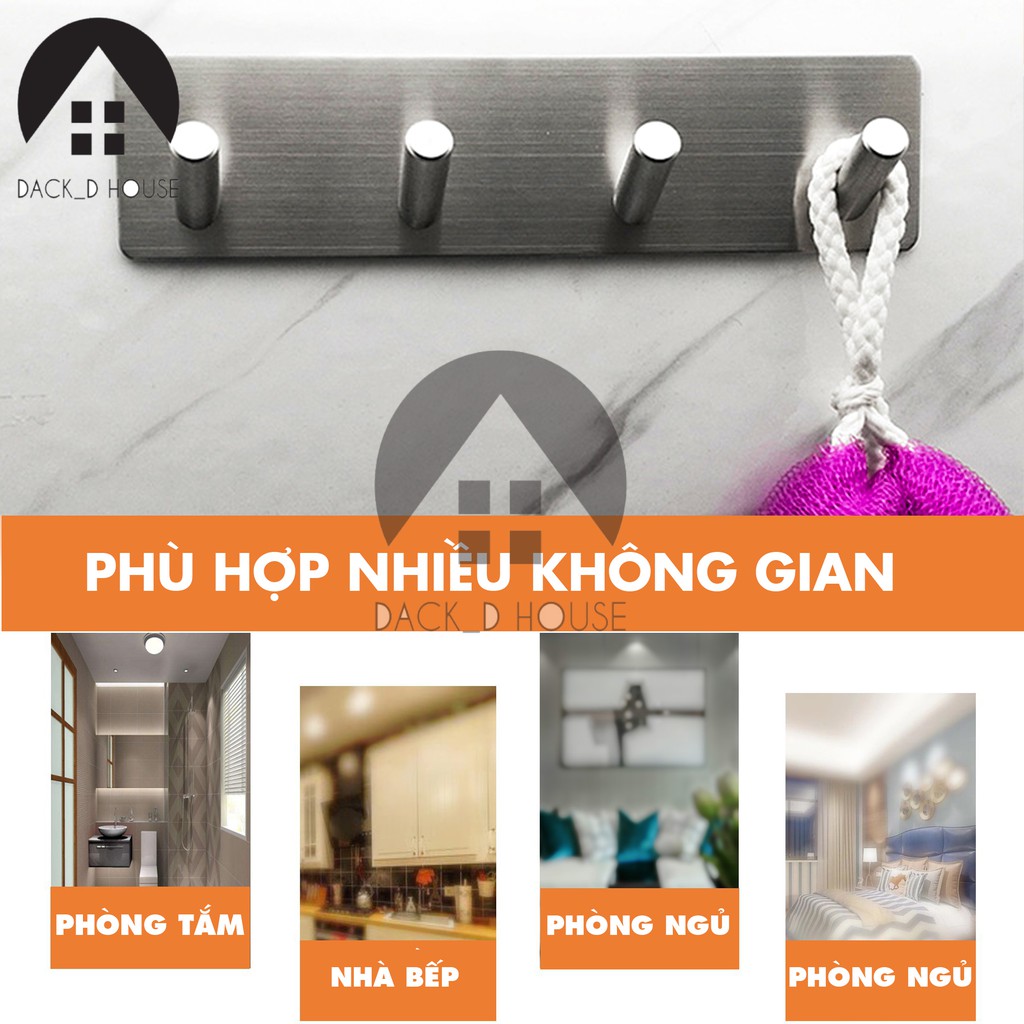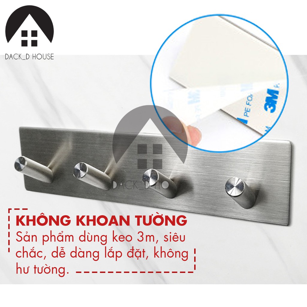 Móc treo quần áo inox Dack D Hous 4 chấu, inox 304 không rỉ sét, kèm keo 3M dán tiện lợi, gia dụng cao cấp