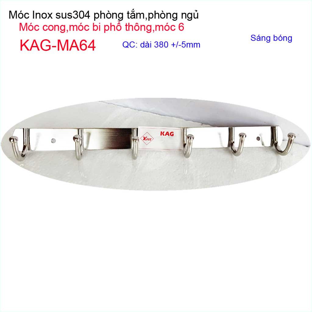 Chất liệu: Móc treo quần áo inox, móc bi 6 chấu treo đồ nhà tắm KAG-MA64 làm bằng Inox 201, inox sáng bóng ( khó bám bẩn)