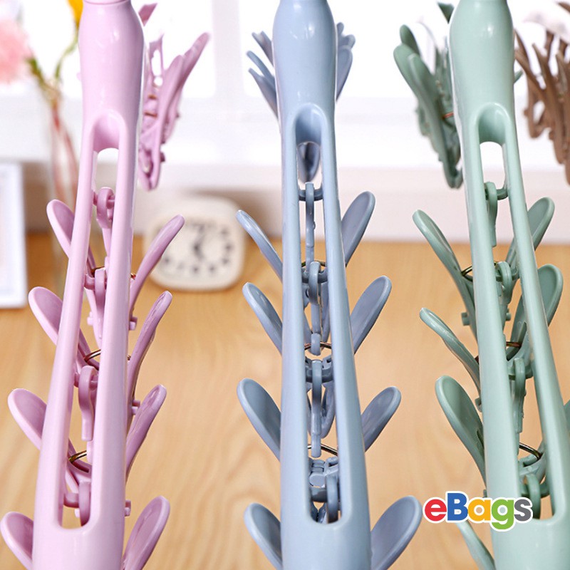 – Gồm 8 chiếc kẹp nhỏ dùng để phơi khăn tay, tất, găng tay, khăn len, khăn mặt... rất tiết kiệm diện tích, đầu móc có khóa giữ cố định giúp cho móc cố định tại một điểm không bị bay hoặc rớt.