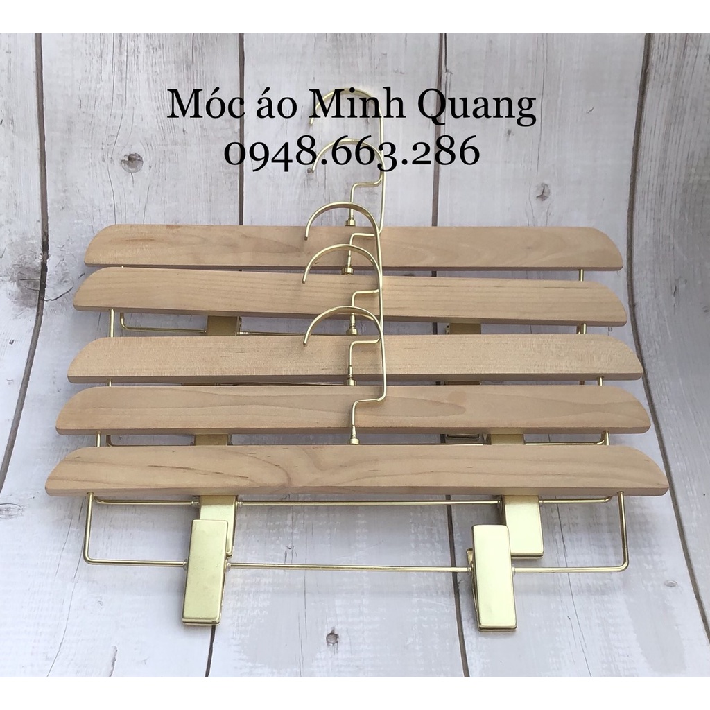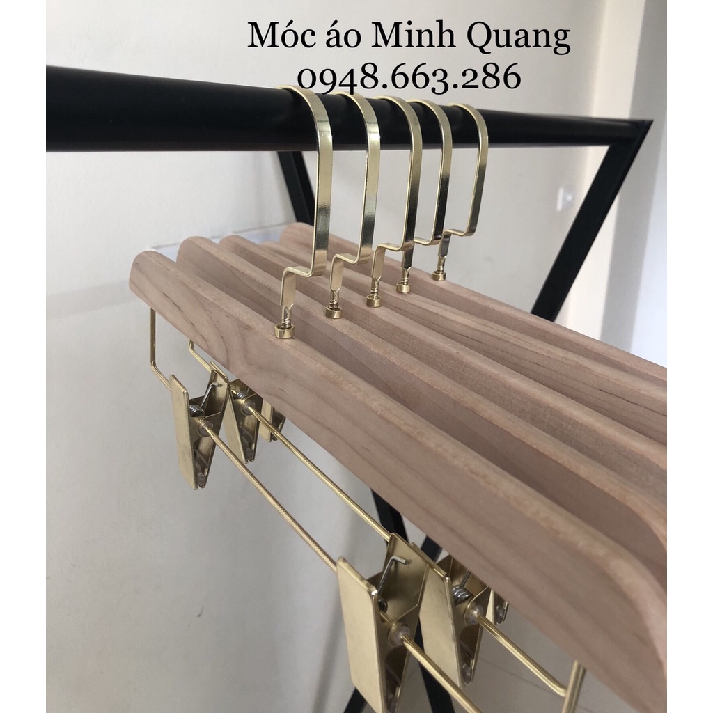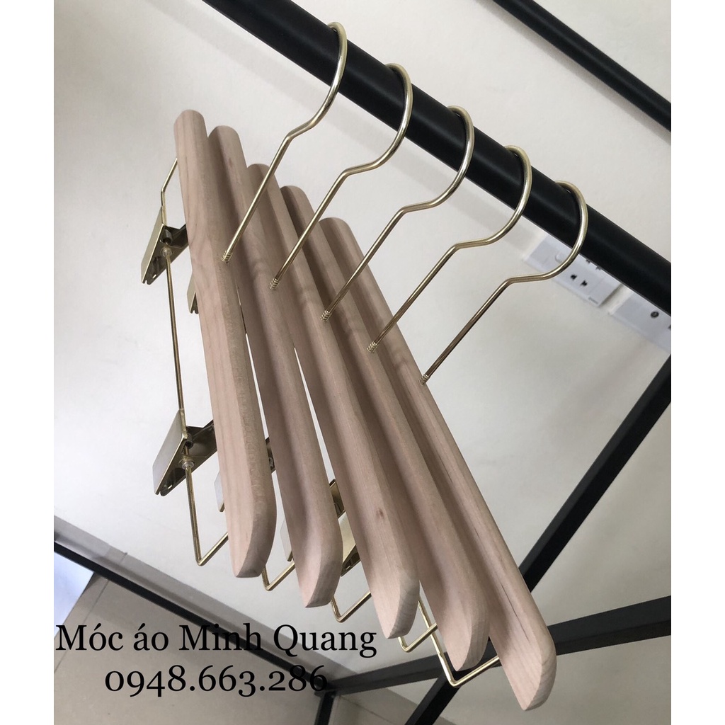 móc treo quần áo-kẹp gỗ mộc đầu kẹp mạ vàng có thanh ngang giúp tùy chỉnh độ rộng hẹp dễ dàng hơn