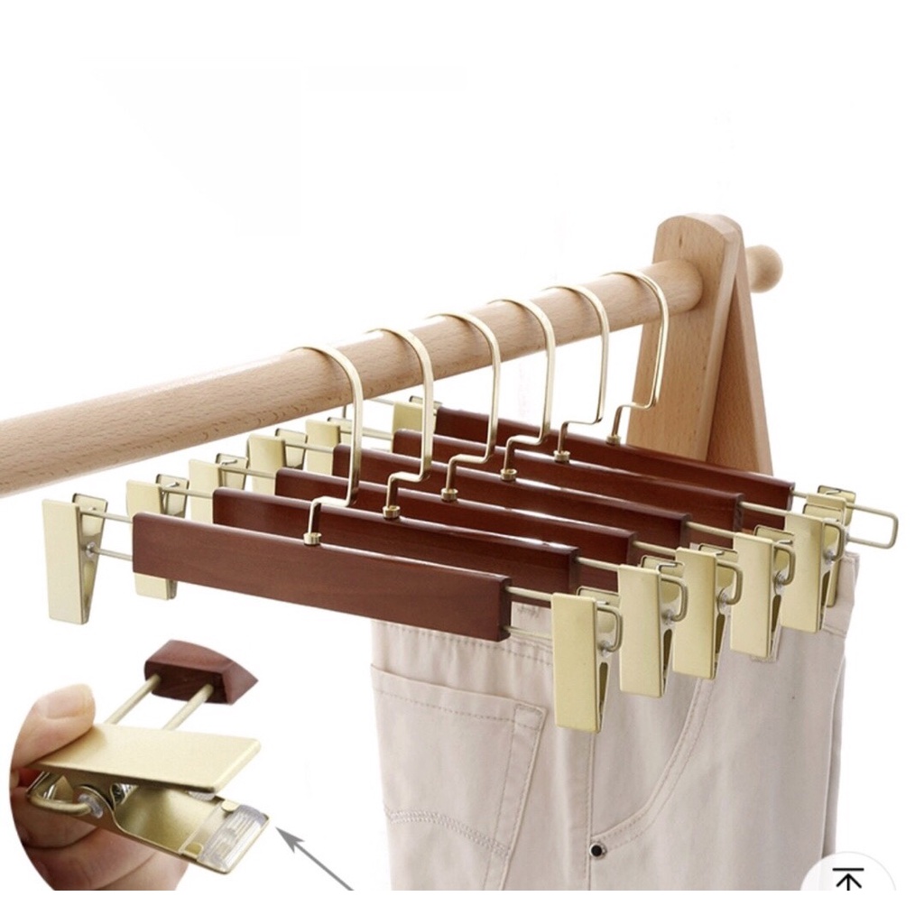 Nhà cửa & Đời sống > Sắp xếp nhà cửa > Mắc áo || móc treo quần áo-kep gỗ nâu đầu kẹp mạ vàng-đầu móc xoay 360 độ-điều chỉnh được độ rộng hẹp của kẹp-chuyên dùng cho shopCòn hàng