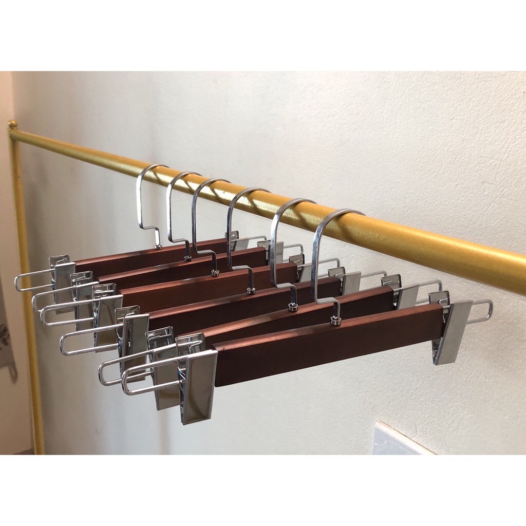 Nhà cửa & Đời sống > Sắp xếp nhà cửa > Mắc áo || móc treo quần áo-kẹp gỗ nâu đầu kẹp inox-điều chỉnh đc độ rộng hẹp của kẹp-chuyên dùng cho shop-gia đình,...Còn hàng