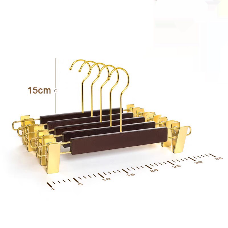 Giới thiệu móc treo quần áo,kẹp gỗ nâu đầu kẹp mạ vàng,kẹp chân váy,quần,phụ kiện cho shop thời trang
