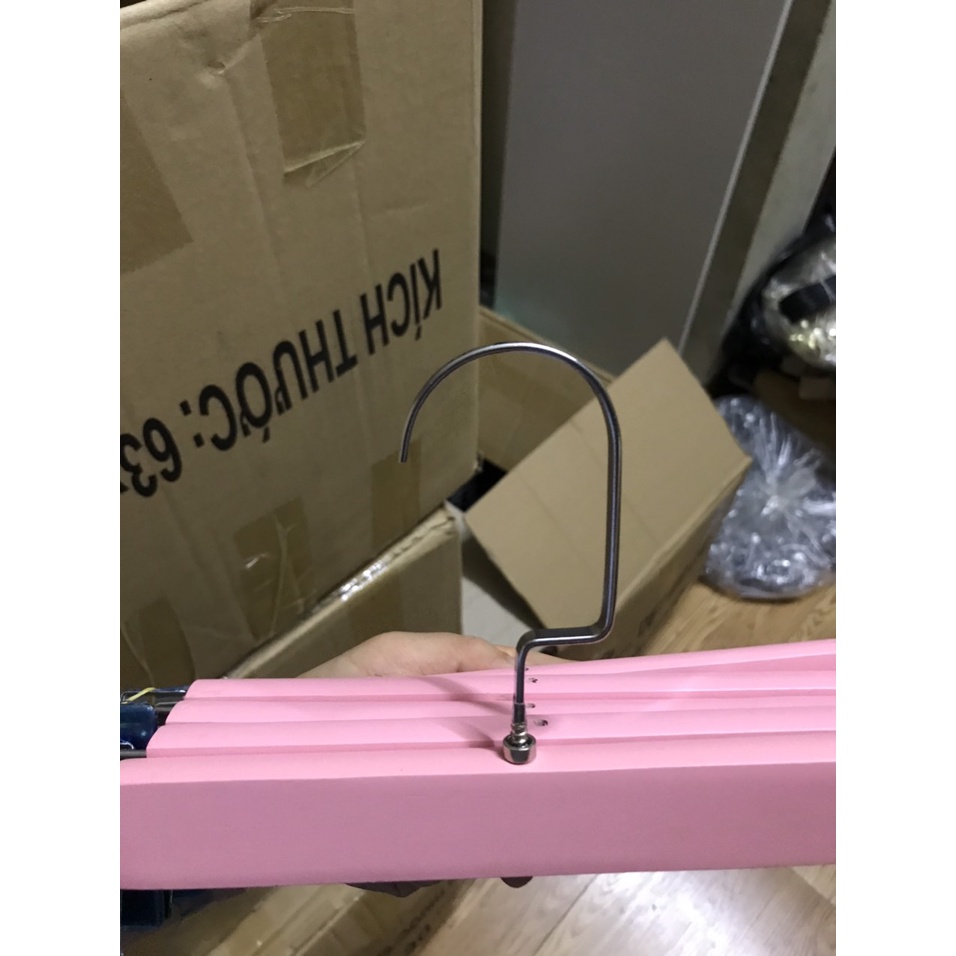 Giới thiệu MÓC KẸP TREO QUẦN ÁO NGƯỜI LỚN BẰNG GỖ MÀU HỒNG CAO CẤP CÓ ĐỆM CAO SU CHỐNG HẰN - Mắc kẹp quần gỗ người lớn