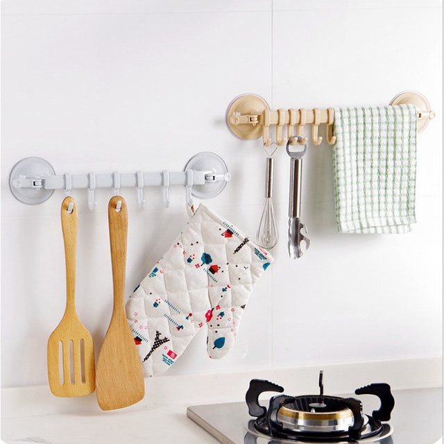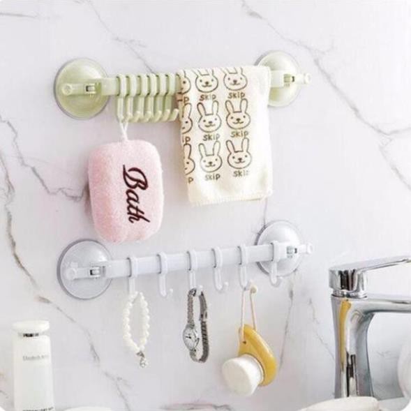 Thanh móc treo quần áo, khăn lau nhà bếp 6 móc đa năng siêu bền siêu hút chân không, đồ dùng nhà bếp➤➤➤ SHOP CAM KẾT➤➤➤