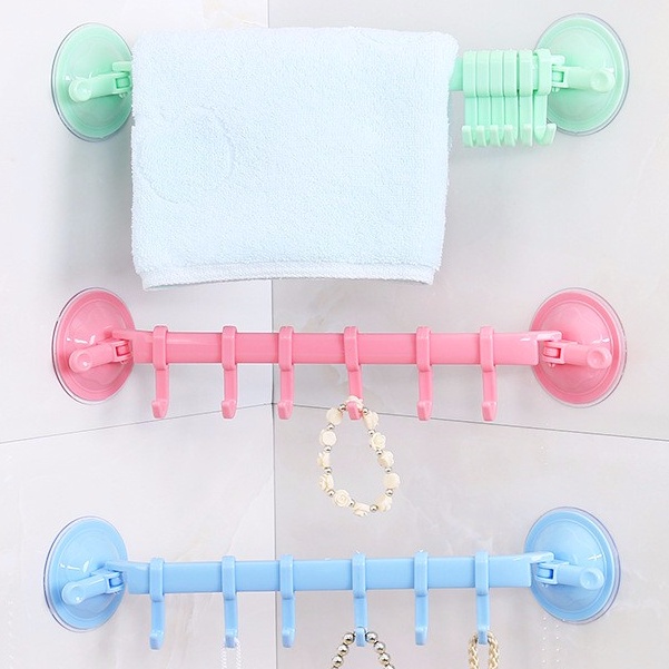 Thanh móc treo quần áo, khăn lau nhà bếp 6 móc đa năng siêu bền siêu hút chân không, đồ dùng nhà bếp