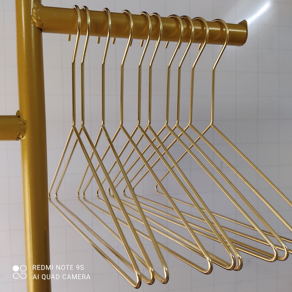 Nhà cửa & Đời sống > Sắp xếp nhà cửa > Mắc áo || móc treo quần áo, mắc áo inox mạ vàng cao cấp có đầu móc dài, mắc kẹp nữ, trẻ em cho shop thời trangCòn hàng