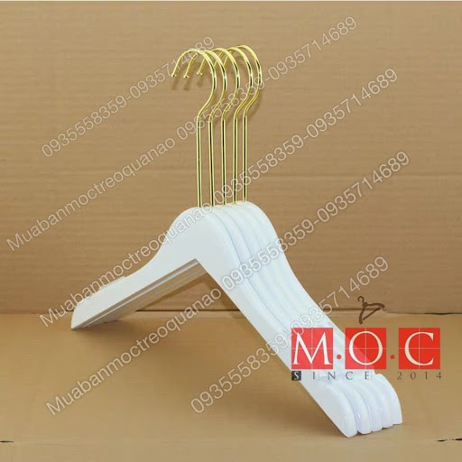 Nhà cửa & Đời sống > Sắp xếp nhà cửa > Mắc áo || móc treo quần áo, mắc gỗ màu trắng cổ tròn đầu vàng dài, kẹp quần nam nữ cho shop thời trangCòn hàng