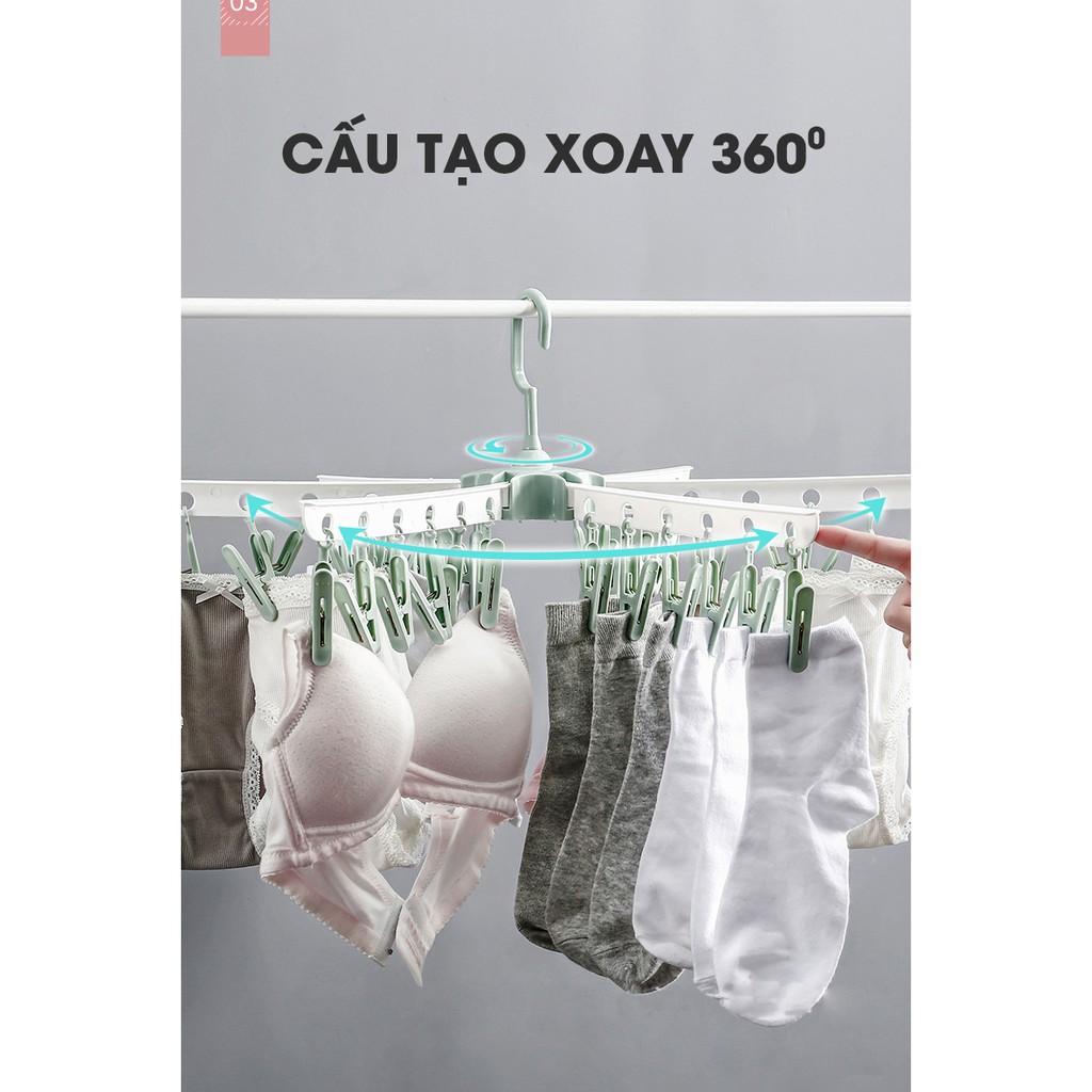 - Móc treo tất, quần áo 36 kẹp làm từ chất liệu an toàn với 36 chiếc móc đi kèm cho phép phơi những loại đồ nhỏ và nhanh khô.