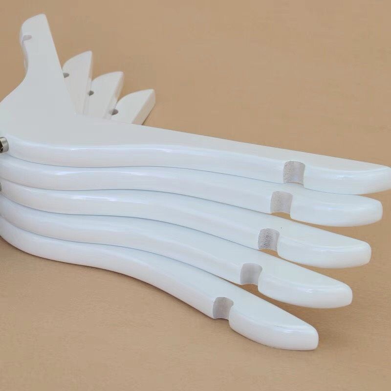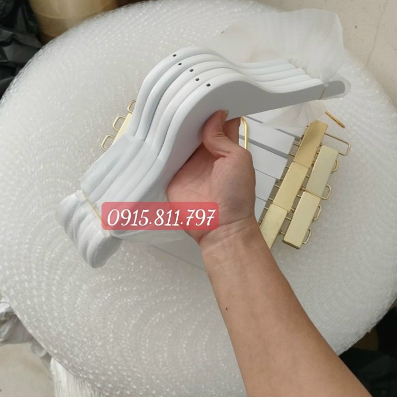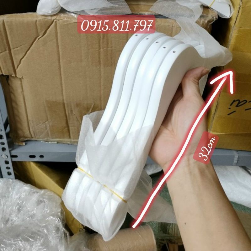 Móc gỗ màu trắng thiết kế 2 bên vai có rãnh chống trơn tuột,kích thước cầu vai rộng 32cm.Thích hợp cho các Shop treo áo,váy,... livestream,chụp hình,trưng bày mẫu.