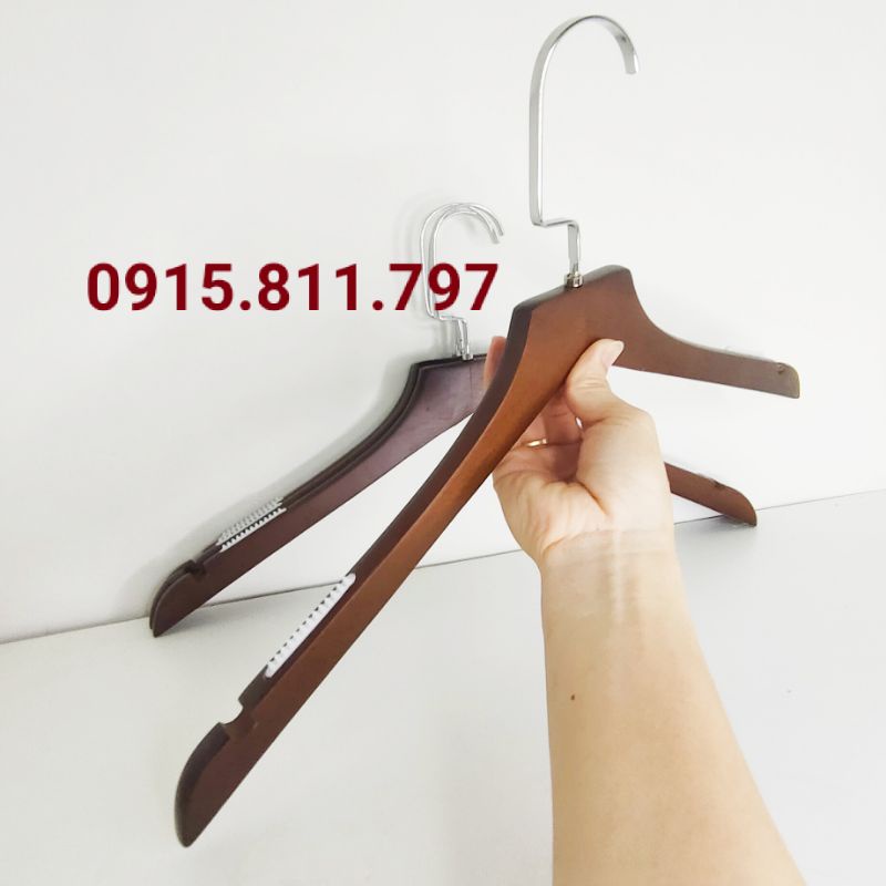 Giới thiệu Móc treo quần áo - móc gỗ nam LOẠI 1 cổ bằng có đệm và rãnh 2 bên vai,kích thước 42cm,2 màu vàng - nâu cực sang
