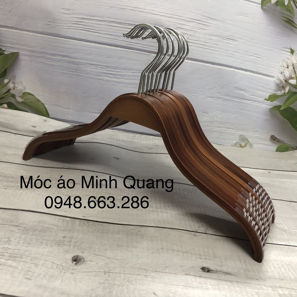móc treo quần áo-móc gỗ tre-mắc gỗ tre màu nâu đầu móc tròn inox-chuyên dùng cho shop thời trang,...