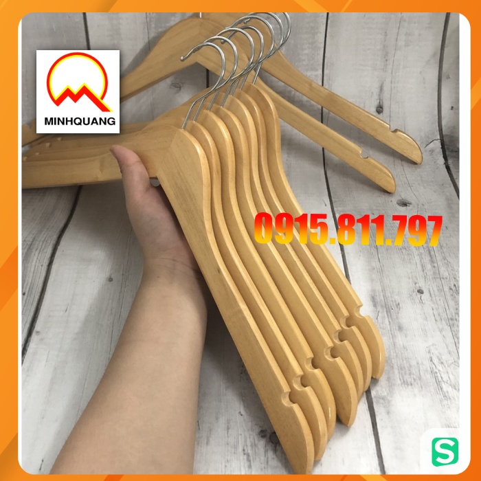 Nhà cửa & Đời sống > Sắp xếp nhà cửa > Mắc áo || moc treo quan ao - móc gỗ vàng cổ tròn treo quần áo nam, nữ kt rộng vai 44cm, rãnh chống trơn tuột 2 bên, đầu mắc xoayCòn hàng