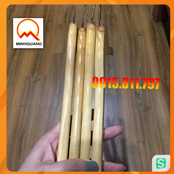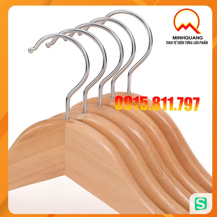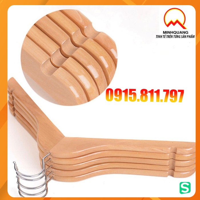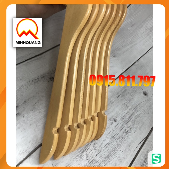 moc treo quan ao - móc gỗ vàng cổ tròn treo quần áo nam, nữ kt rộng vai 44cm, rãnh chống trơn tuột 2 bên, đầu mắc xoay
