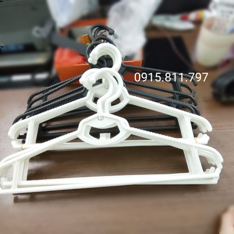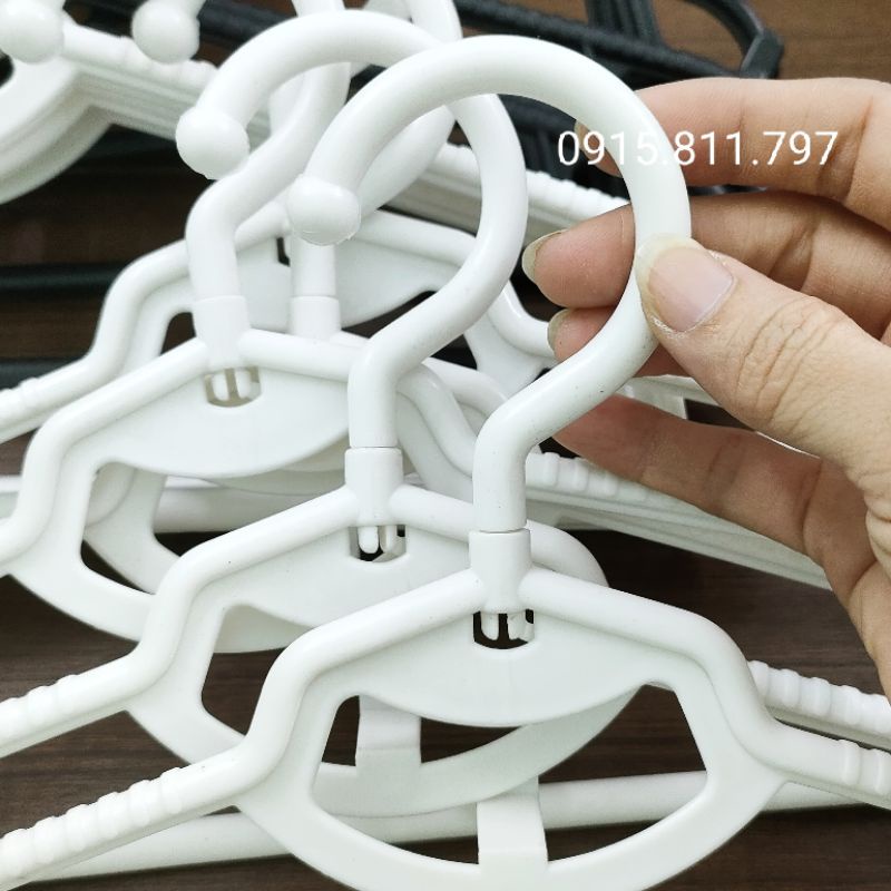 Nhà cửa & Đời sống > Sắp xếp nhà cửa > Mắc áo || Moc treo quần áo - móc nhựa cổ xoay 360 độ siêu bền,rộng vai 41cm,2 màu đen và trắngCòn hàng
