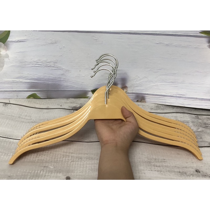 Nhà cửa & Đời sống > Sắp xếp nhà cửa > Mắc áo || móc treo quần áo-móc nhựa vàng vai đệm-đầu móc tròn inox sáng xoay được 360 độ-móc chuyên dùng cho shop thời trang,.Còn hàng