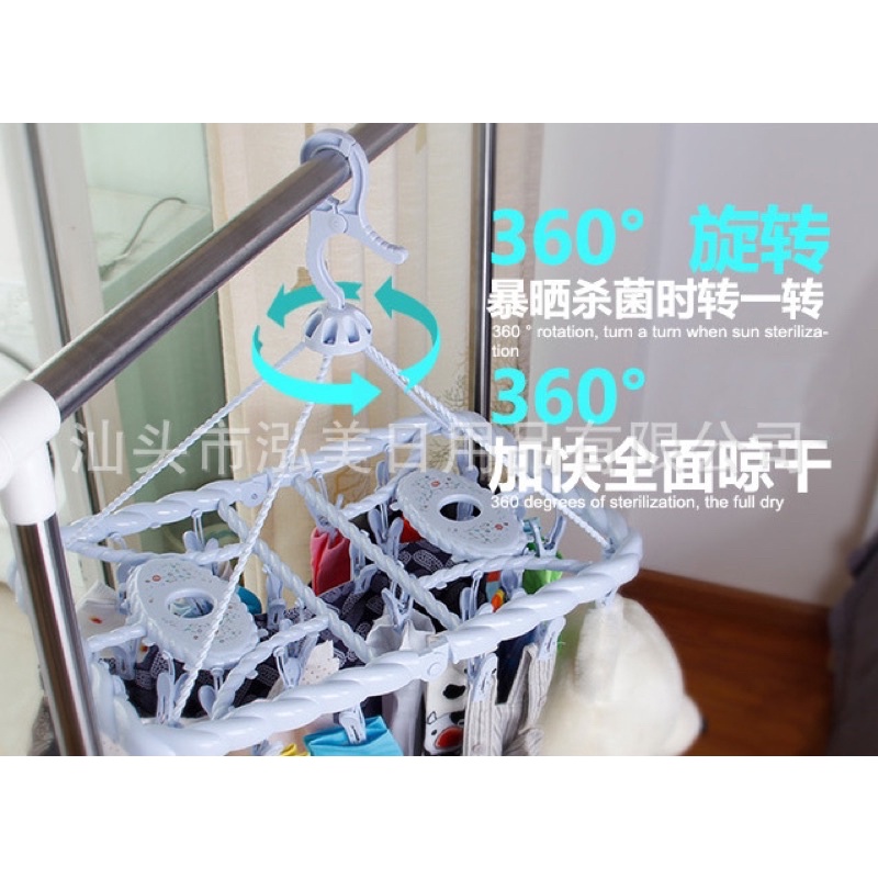 Móc chùm phơi quần áo với thiết kế hình vuông, giúp bạn phơi các quần áo trẻ sơ sinh, đồ nhỏ, khăn, tã lót, tất...một cách dễ dàng mà không sợ bị mất hay thất lạc do gió thổi bay.