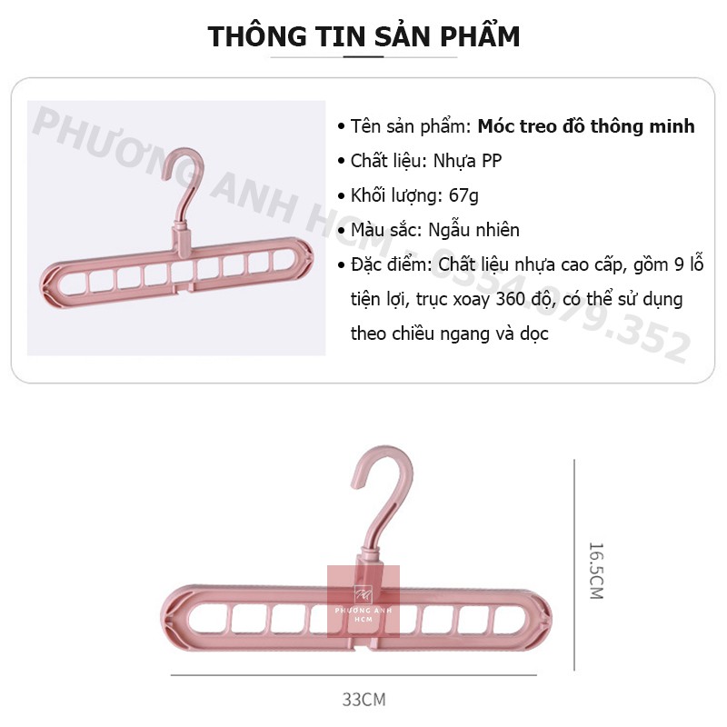 Giới thiệu Móc Treo Quần Áo, Móc Treo Phơi Đồ 9 Lỗ Thông Minh Hai Chiều Ngang Dọc