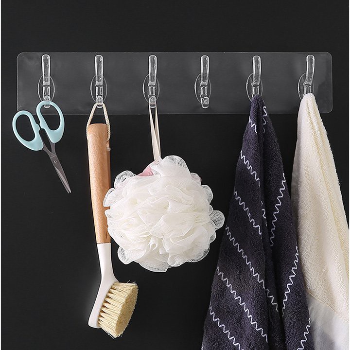 Móc Treo Quần Áo Nhà Tắm 6 Chấu Trong Suốt Không Khoan Tường