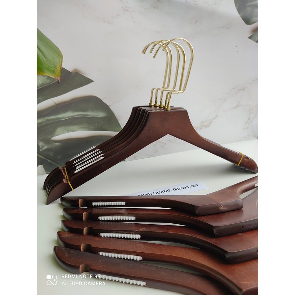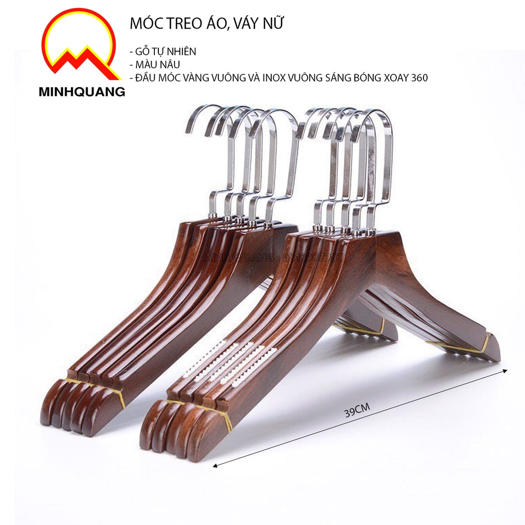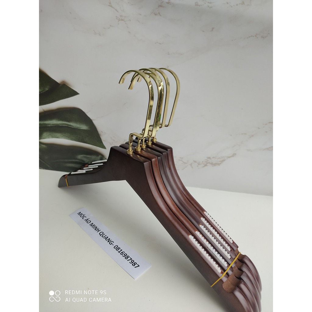 Móc treo quần áo nữ nâu bằng đệm vai chống tuột quần áo,đầu móc xoay 360 chuyên dùng cho shop thời trang váy cưới