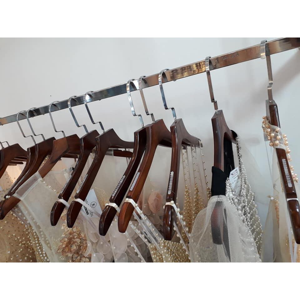 Giới thiệu Móc treo quần áo nữ nâu bằng đệm vai chống tuột quần áo,đầu móc xoay 360 chuyên dùng cho shop thời trang váy cưới