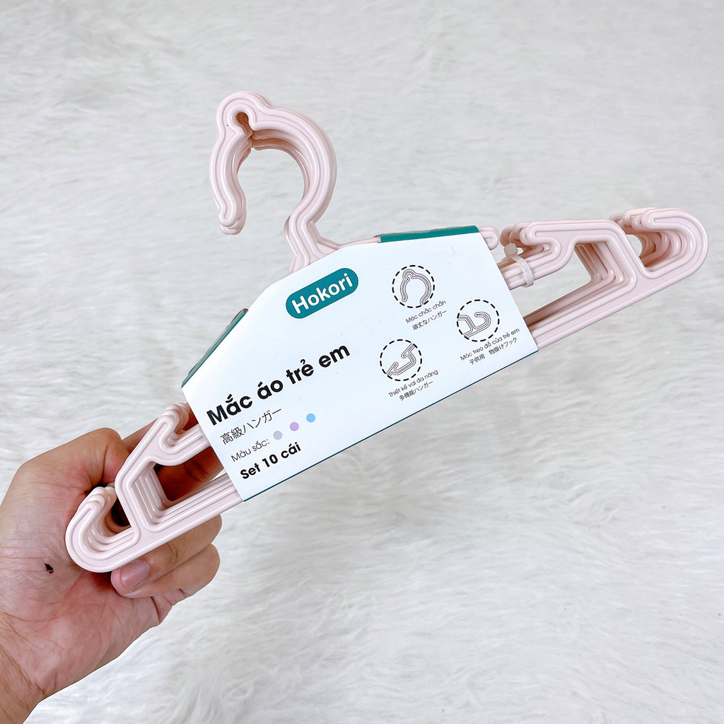 Móc treo quần áo 𝑭𝒓𝒆𝒆𝒔𝒉𝒊𝒑 Set 10 Móc quần áo trẻ em Hokori nhựa cao cấp Việt Nhật