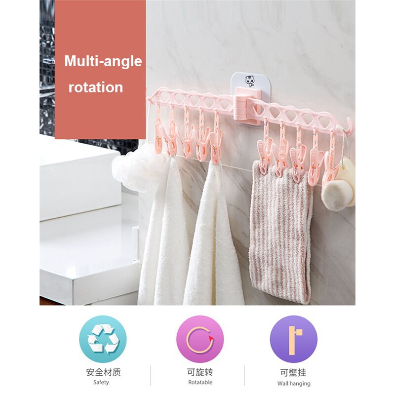 Giới thiệu Móc treo quần áo tất dán tường thông minh 10 kẹp nhựa phơi đồ lót trẻ em người lớn đa năng tiện lợi