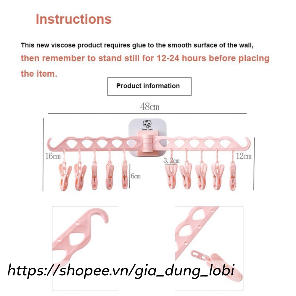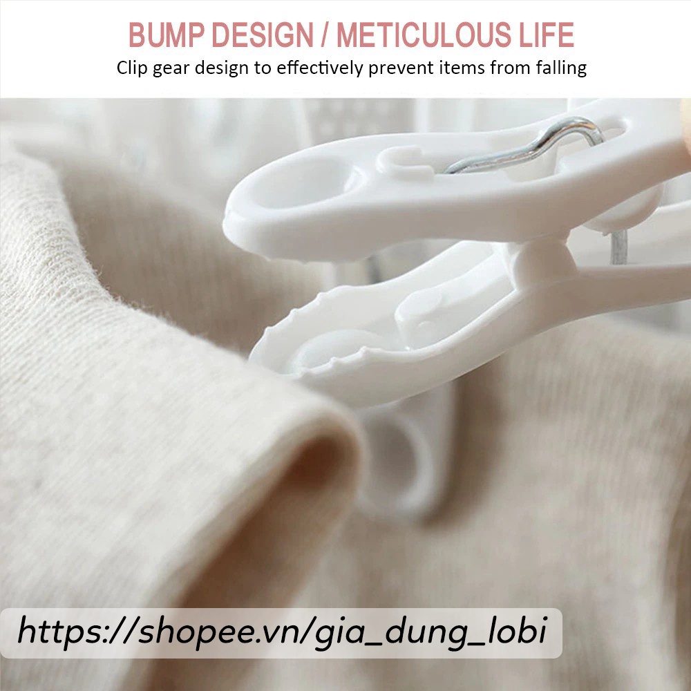 -Móc treo tất, quần áo - 10 kẹp đa năng làm từ chất liệu an toàn với 12 chiếc móc đi kèm cho phép phơi những loại đồ nhỏ và nhanh khô.