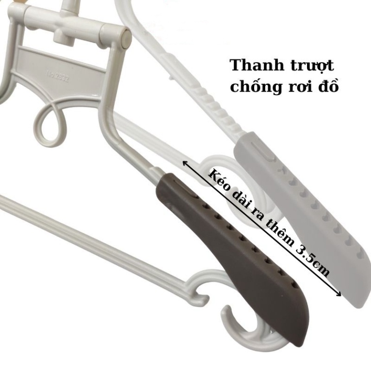 Móc treo quần áo đa năng thiết kế chống trượt hai bên, treo giữ váy, có thể kéo dài- Chất liệu nhựa PP nguyên sinh, có độ bền cao, không bị bay màu khi sử dụng ngoài trời, an toàn khi sử dụng.