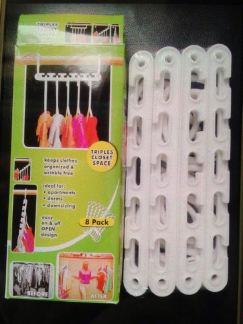 ❗️ Bộ 8 móc treo quần áo thông minh gồm 8 móc, mỗi móc treo được 5 áo quần, và cả các loại túi xách, khăn... với tổng trọng lượng treo lên tới 5 kg.