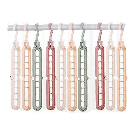Móc treo quần áo thông minh 9 lỗ, giúp quần áo gọn gàng, tiết kiệm diện tíchMóc treo quần áo 9 lỗ đa năng là sản phẩm đang được lựa chọn nhiều bởi tính năng vượt trội hơn so với những loại móc thông thường. Với thiết kế thông minh, tiện lợi treo được 9 móc trên 1 dàn. Treo được nhiều quần áo. Treo ngang treo dọc chỉ cần 1 động tác nhỏ. Chất liệu Nhựa ABS cứng, chịu lực cao. an toàn cho sức khỏe. Đây là đồ dùng giúp bạn tiết kiệm được diện tích của tủ quần áo, quần áo lúc nào cũng được treo thẳng không sợ nhăn nhúm