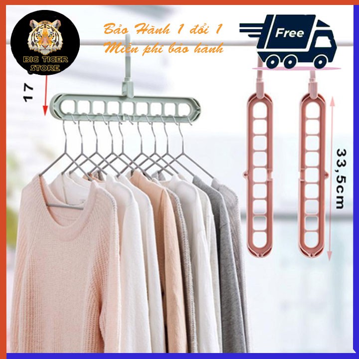 - Móc treo quần áo đa năng tiện ích tiết kiệm diện tích (9 lỗ) thiết kế thông minh, tiện lợi treo được 9 móc trên 1 dàn. Treo được nhiều quần áo. Treo ngang treo dọc chỉ cần 1 động tác nhỏ. Chất liệu Nhựa ABS cứng, chịu lực cao. an toàn cho sức khỏe.