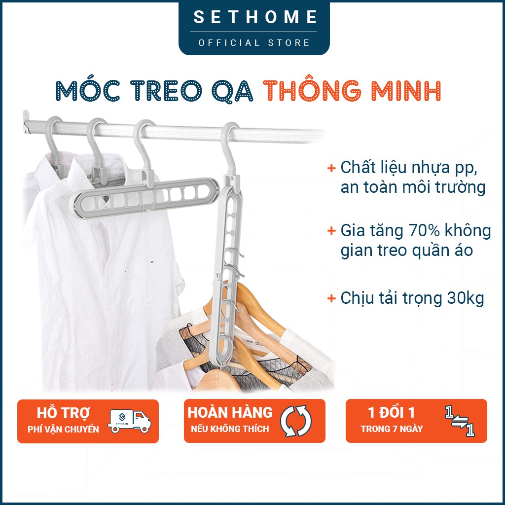 Móc treo quần áo thông minh SETHOME tiết kiệm 75% không gian tủ quần áo, chất liệu PP chắc chắn chịu lực 40kg1. MÔ TẢ SẢN PHẨM: